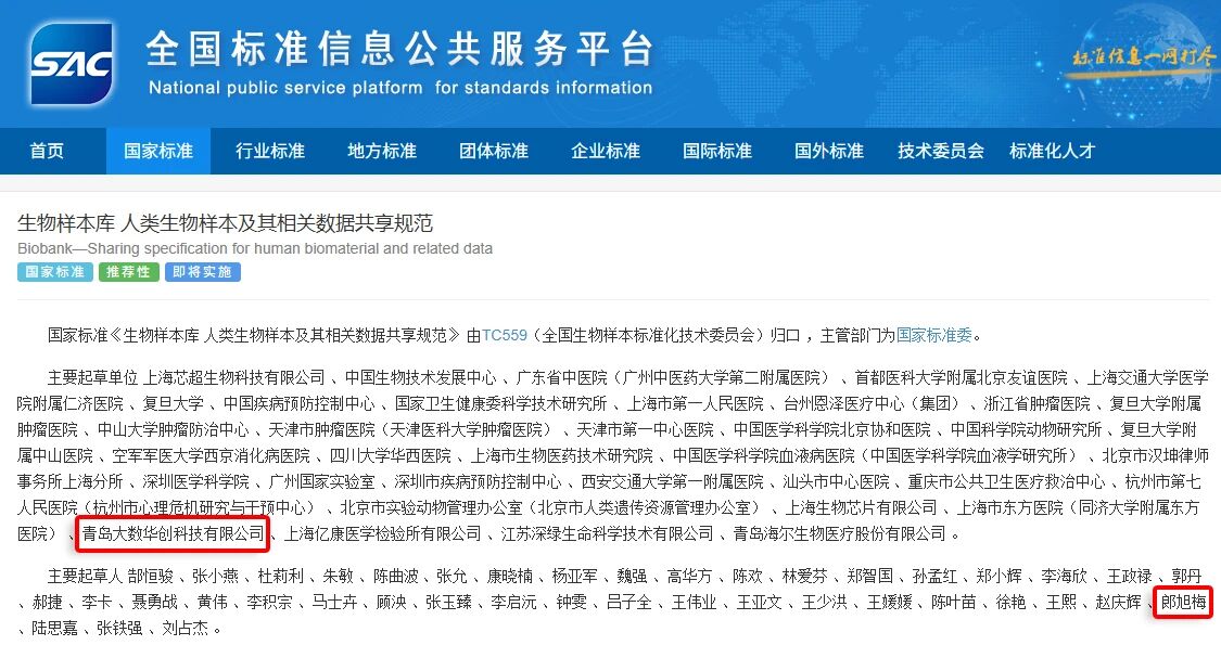大数华创作为生物样本库信息化领域标杆企业,凭借深厚技术积累与丰富项目落地经验,成功跻身核心起草单位行列,与国内顶尖医院、科研机构专家并肩执笔,在样本共享流程、数据安全管控、信息化管理、全流程质量追溯等关键环节提供核心技术支撑,以数字化能力助力国家标准落地成型。